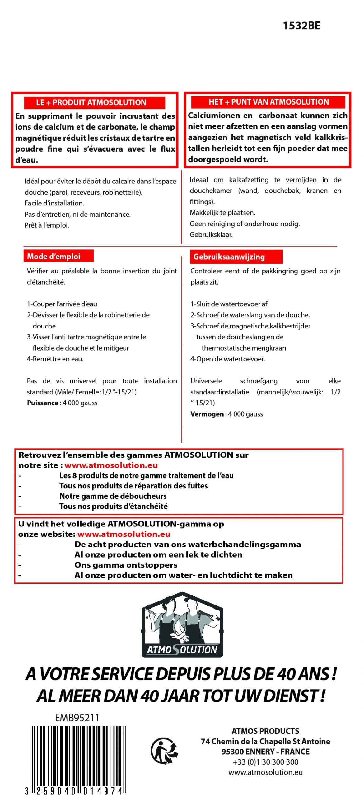 ✓ Verlengd de levensduur van de sanitaire uitrustingen of installaties.